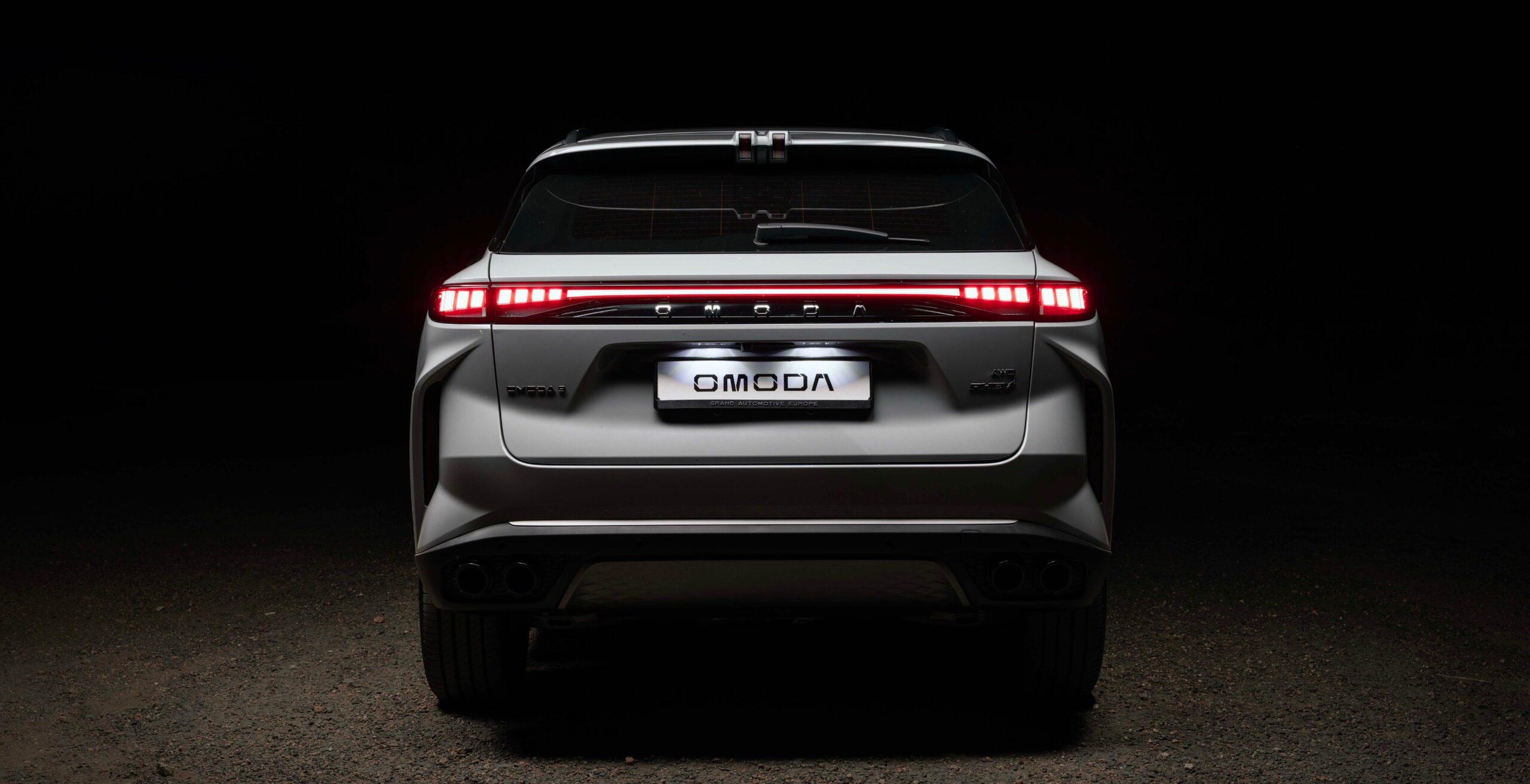 OMODA 9 vyžaruje sebavedomie vďaka dynamickým LED zadným svetlám, ktoré zdôrazňujú šírku vozidla a jeho high-tech štýl.